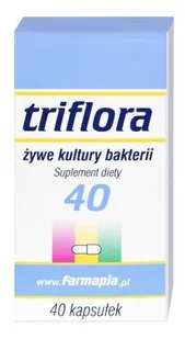Suplement diety zawierający żywe kultury bakterii kwasu mlekowego, które przywracają naturalną florę bakteryjną w przewodzie pokarmowym i regulują jego pracę. Składniki preparatu wzmacniaja odporność organizmu, regulują pracę przewodu pokarmowego, przywracają naturalną florę bakteryjną przewodu pokarmowego, poprawiają perystaltykę jelit, ułatwiają wypróżnianie, hamują rozwój drobnoustrojów chorobotwórczych. Zasotosowanie: suplementacja diety w składniki wspierające prawidłowe funkcjonowanie przewodu pokarmowego i przywracjaące jego naturalną florę bakteryjną. Zalecane spożycie: 1-2 kapsułka 2-3 razy dziennie. Składniki: bakterie kwasu mlekowego: Lactobacillus acidophilus, Lactobacillus paracasei i Bifidobacterium bifidum), laktoza (substancja wypełniająca), kapsułka żelatynowa (dwutlenek tytanu, woda, żelatyna). 1 kapsułka zawiera: co najmniej 1,5 x 10^9 kwasu mlekowego w proporcjach: 35% Lactobacillus acidophilus, 30% Lactobacillus paracasei, 35% Bifidobacterium bifidum. Ważne wskazówki: Zawiera laktozę. Preparat należy przechowywać w temperaturze pokojowej. Suplement należy przechowywać w sposób niedostępny dla dzieci. Chronić przed światłem. Ważne jest stosowanie zbilansowanej i zróżnicowanej diety oraz prowadzenie zdrowego tryby życia. Preparat nie może być stosowany jako substytut zróżnicowanej diety. Nie należy przekraczać zalecanej porcji dziennej. Podmiot odpowiedzialny: Farmapia Sp.z o.o.