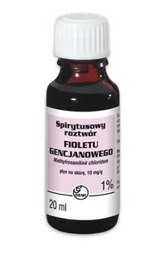 Fiolet gencjanowy to preparat w postaci roztworu spirytusowego 1% działającego antyseptycznie i osuszające. Ponadto działa bakteriobójczo i znajduje zastosowanie w odkażaniu ran skórnych. Wskazania: preparat stosowany do dezynfekcji w stanach zapalnych skóry, ranach sączących i owrzodzeniach. Skład: 100g preparatu zawiera substancję czynna: metylorozanilinowy chlorek (filoet gencjanowy) 1g oraz substancje pomocnicze: etanol 96%, woda oczyszczona. Działanie: przeciwbakteryjne, odkażające, osuszające. Sposób użycia: podanie na skórę, zmienione chorobowo miejsca na skórze przetrzeć wacikiem nasączonym płynem. Przeciwwskazania: nadwrażliwość na którykolwiek ze składników leku. Nie stosować bezpośrednio na otwarte rany. Nie stosować w razie głębokich uszkodzeń skóry. Nie stosować na błony śluzowe.