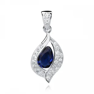 Srebrna, delikatna zawieszka pr.925 - szafirowa kropla w cyrkoniach. Przepiękna i elegancka zawieszka będzie wspaniałym upominkiem dla ukochanej osoby.
