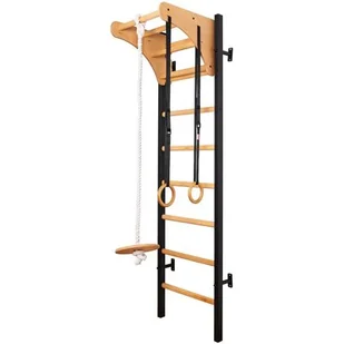 The wall bars are 230 cm tall and can be easily installed in any room with a minimum ceiling height of 240cm. A variety of training exercises and activities for all ages The wall bars can be used for strenuous workout exercises, with or without physio belts or sling trainers. At the same time, little ones also get great use out of the wall bars as an adventure playground, with accessories for fun and games. > High-quality BenchK 210 wall bars (metal frame, 8 oval rungs in beech wood) > Removable pull-up bar > Children's accessories (wooden gymnastics rings, cotton climbing rope with swing) > Space-saving training equipment combining sport and furniture design > Versatile fitness equipment for your home workout > Offers plenty of variety in terms of stretching, gymnastics and strength training > Training on the wall bars contributes to the development of different muscle groups and flexibility > Ideal for children and adults alike > The wall bars are simple and convenient to install > Stable construction > Dimensions: height = 230 cm - width = 67 cm > Minimum ceiling height installation requirement: