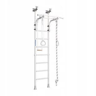 Kometa 5 drabinka gimnastyczna Najważniejsze cechy produktu: posiada certyfikat Unii Europejskiej, atest TÜV Nord testowana fabrycznie obciążeniem 200kg trwałe materiały: metalowa konstrukcja + proszkowa farba ogumione antypoślizgowe szczeble z masującymi wypustkami rozmaite akcesoria gimnastyczne dla dzieci w zestawie estetyczny wygląd, dopracowana w szczegółach konstrukcja Dane Techniczne: sposób montażu: rozporowy wysokość zestawu: