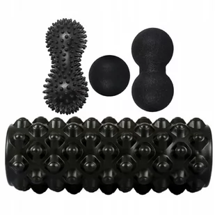 ZESTAW ROLLER Z WYPUSTKAMI +PODWÓJNA PIŁKA Z WYPUSTKAMI + PIŁKI DO MASAŻU Kolor czarny