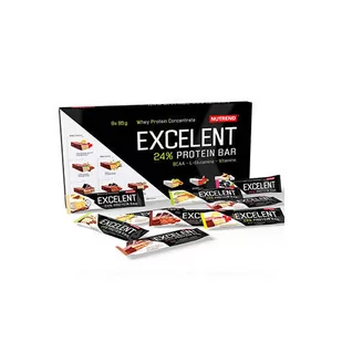 Zestaw batonów proteinowych Excelent firmy Nutriend to bombonierka zawierająca 9 batonów w różnych wyjątkowych smakach. Batony zawierają aż 25% białka, L-Glutaminę, BCAA i witaminy. Nie zawierają glutenu.