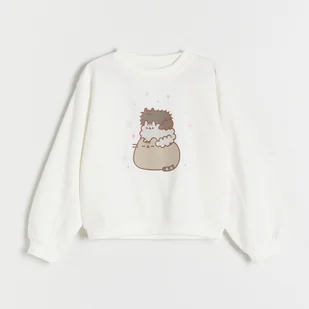 Reserved - Bawełniana koszulka Pusheen - złamana biel