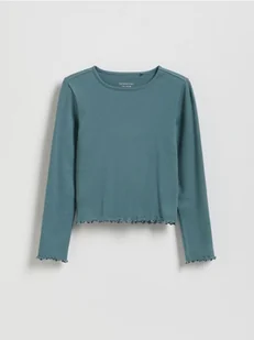 Reserved - Bawełniana koszulka w prążek - ciemny turkus