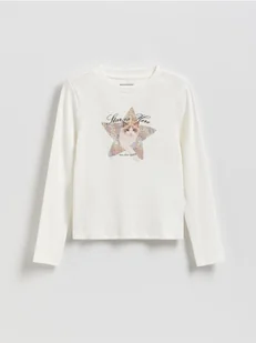 Reserved - Bluzka z błyszczącym nadrukiem - złamana biel