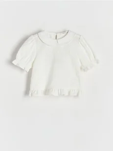 Reserved - Bluzka z haftowanym wzorem - złamana biel