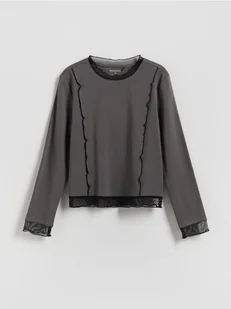 Reserved - Gładka bluzka z siateczką - ciemnoszary