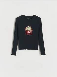 Reserved - Prążkowana bluzka z aplikacją - czarny