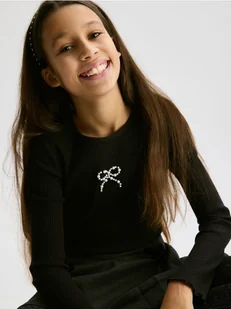 Reserved - Prążkowana koszulka z aplikacją - czarny