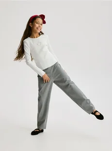 Reserved - Prążkowana koszulka z aplikacją - złamana biel