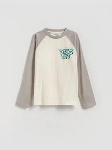 Reserved - Bawełniany longsleeve z nadrukiem - złamana biel
