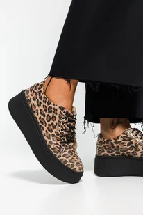 Beżowe sneakersy skórzane damskie creepersy sznurowane z wzorem panterki PRODUKT POLSKI Casu 516-40
