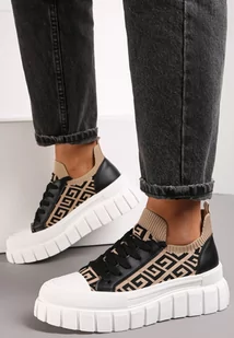 Beżowo-Czarne na Tłoczonej Platformie z Geometrycznym Wzorem Votah