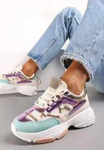 Beżowo-Fioletowe Sneakersy Ozdobione Sznureczkiem z Cyrkoniami Nathanias