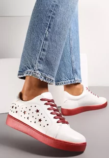 Biało-Czerwone Sneakersy Sznurowane na Grubej Podeszwie Nensa
