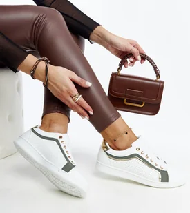 Biało-zielone sneakersy na platformie Amala to perfekcyjne połączenie trendu i nowoczesności. Ich niski design sprawia, że są wygodne i stylowe zarazem. Sznu...