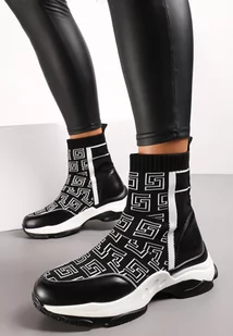 Czarne Skarpetkowe Sneakersy na Płaskiej Grubej Podeszwie Parnelia