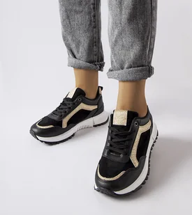 Sneakersy mają migdałkowy nosek, co dodaje im elegancji i subtelności. Czarne kolory sprawiają, że są uniwersalne i łatwo dopasować je do różnych stylizacji....