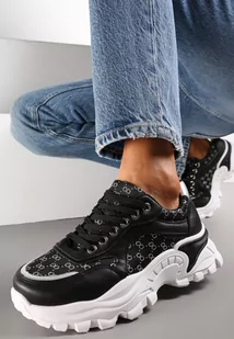 Czarne Sneakersy z Metaliczną Nitką na Grubej Podeszwie Melimeda