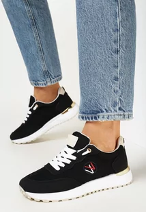 Czarne Sneakersy z Metalicznymi Wstawkami i Drobnym Haftem c