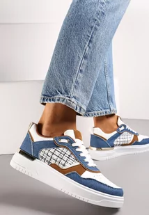 Granatowe Sneakersy Ozdobione Wstawką z Tweedowego Materiału Saini