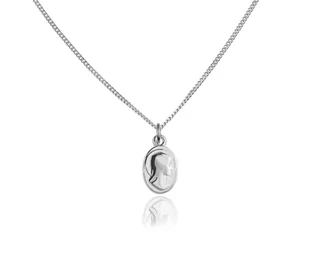 Medalik Matka Boska Deliatny i subtelny medalik z wizerunkiem Matki Boskiej Wymiary: ok. 1,0 x 0,8 cm Wykonany w całości ze srebra pr. 925. W komplecie łańcuszek w kilku długościach do wyboru. Uwaga! Można wybrać powłokę galwaniczną dodatkowo zabezpieczającą srebro przed czynnikami zewnętrznymi (w tym czernieniem) - platynowanie. Platyna nadaje srebra nieco ciemniejszy, bardziej metaliczny odcień.