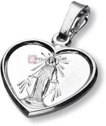 Medalik do powieszenia na łańcuszku w kształcie serce z wizerunkiem M. B Niepokalanej Wysokość ok 2cm, waga 1,9 - 2,0g , próba srebra 925, produkt polski Na zdjęciach przedstawiono rewers i awers. Pasuje idealnie na każdy łańcuszek! Do każdego medalika dołączamy informacje o specyfikacji .