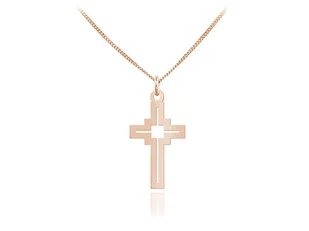 Naszyjnik z Krzyżykiem Deliatny i subtelny naszyjnik z motywem Krzyża. Idealny na stylowy upominek, także okolicznościowo - na takie okazje jak Chrzciny, Komunia, Bierzmowanie. Wymiary: szerokość krzyża - ok. 1,2 cm Wykonany w całości ze srebra pr. 925 pokrytego galwanicznie różowym złotem.