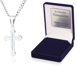 Srebrny KRZYŻYK diamentowany łańcuszek, próba 925 DEDYKACJA - Pamiątka prezent z GRAWEREM Elegancki i trwały krzyżyk wykonany ze srebra próby 925, poddanego procesowi rodowania. Powłoka rodowa nadaje biżuterii wyjątkowy blask oraz zwiększa jej odporność na zarysowania, ciemnienie i działanie czynników zewnętrznych. Dzięki swojemu ponadczasowemu designowi, rodowany srebrny krzyżyk będzie wyjątkowym prezentem oraz trwałą ozdobą, idealną do noszenia na co dzień. Możliwość personalizacji za pomocą grawera dodaje jeszcze większej wartości i znaczenia temu wyjątkowemu upominkowi. Parametry: komplet posiada potwierdzoną dołączoną specyfikację o próbie i gramaturze srebra.