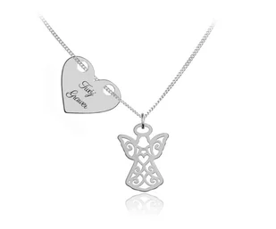 Srebrny naszyjnik z ażurowym Aniołkiem i serduszkiem Biżuteria wykonana jest ze srebra pr. 925. Do wyboru kilka długości łańcuszka by łatwiej było dopasować naszyjnik do siebie lub obdarowywanej osoby. Delikatna ażurowa struktura nadaje lekkości i kobiecości a anielski motyw sprawia że całość prezentuje się dyskretnie i wyrafinowanie. Prosimy o podanie treści grawerunku w oknie "treść". Wykonujemy także grawerunek dwustronnie - na jednej stronie mieści się ok.