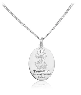 1,6 x 1,2 cm do wyboru kilka długości i splotów łańcuszka Pudełko i tabliczka Do naszyjnika dołączone są pudełeczko jubilerskie z motywem I Komunii Świętej oraz tabliczka z laminatu grawerskiego z wygrawerowaną treścią. Całość stanowi gotowy, stylowy zestaw na podarunek z okazji I Komunii Świętej. prosimy o wybór szablonu - w gotowych szablonach edycji podlegają tylko i wyłącznie obszary zaznaczone na czerwono. Można także w ogóle zrezygnować z tabliczki, wtedy należy wybrać opcję "bez tabliczki" a w oknie "treść" wpisać "bez treści" i tabliczka nie zostanie wtedy dołączona do zestawu. Medalik na Komunię Świętą Ofiaruj niezwykłą duchową pamiątkę z okazji pierwszej komunii świętej.