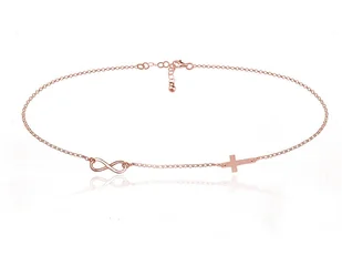 Srebrny naszyjnik z krzyżykiem Wykonany ze srebra pr. 925 dodatkowo uszlachetnionego różowym złotem. Wymiary krzyżyka to ok. 1,6 x 0,8 cm. Proponujemy kilka długości naszyjnika do wyboru, by można było idealnie dopasować naszyjnik do swoich potrzeb.