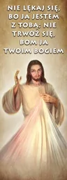 Baner na Boże Ciało "Nie lękaj się, bo ja jestem z Tobą. . " 75x200 cm Baner religijny przygotowany specjalnie na uroczystość Bożego Ciała. Na produkcie znajduje się wizerunek Jezusa Chrystusa. W górnej części banera religijnego widnieje napis: "Nie lękaj się, bo ja jestem z Tobą.