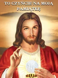 Baner na Boże Ciało "To czyńcie na moją pamiątkę" 75x100 cm Baner religijny przygotowany specjalnie na uroczystość Bożego Ciała. Na produkcie znajdują się Jezus Chrystus. W górnej części banera religijnego widnieje napis: "To czyńcie na moją pamiątkę". Baner religijny w rozmiarze: