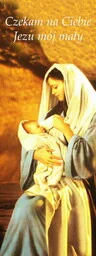 Baner na Boże Narodzenie "Czekam na Ciebie Jezu mój mały" 75x200 cm W centralnej części prezentowanego banera religijnego znajduje się Najświętsza Maryja Panna oraz Dzieciątko Jezus. W górnej części widnieje napis: "Czekam na Ciebie Jezu mój mały". Baner religijny w rozmiarze: 75x200 cm.