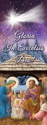 Baner na Boże Narodzenie "Gloria in Excelsis Deo" 75x200 cm W centralnej części prezentowanego banera religijnego znajduje się Święta Rodzina. W górnej części produktu widnieje napis: "Gloria in Excelsis Deo". Baner religijny w rozmiarze: 75x200 cm.