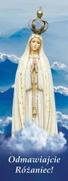 Baner na Różaniec "Odmawiajcie różaniec" 75x200 cm W centralnej części prezentowanego banera religijnego znajduje się wizerunek Najświętszej Maryi Panny. W dolnej części produktu widnieją słowa "Odmawiajcie różaniec" Baner religijny w rozmiarze: 75x200 cm.
