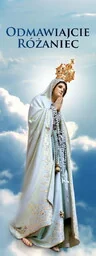 Baner na Różaniec "Różaniec to dar od B0ga!" 75x200 cm W centralnej części prezentowanego banera religijnego znajduje się wizerunek Najświętszej Maryi Panny. W górnej części produktu widnieją słowa "Różaniec to dar od Boga przez Maryję dla ludzi !" Baner religijny w rozmiarze: 75x200 cm.