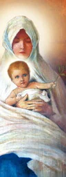Baner religijny Matka Boża z Dzieciątkiem Jezus 75x200 cm Baner religijny przedstawia wizerunek Matki Bożej z Dzieciątkiem Jezus. Baner religijny w rozmiarze: 75x200 cm.
