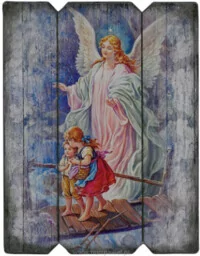 Ikona Anioł Stróż (trójdzielna)Ręcznie wykonana ikona drewniana (wykonana techniką własną) zapakowana w celofanowy woreczek. Ikona zabezpieczona jest stosownymi preparatami zapobiegającymi jej deformacji w pomieszczeniach o różnych temperaturach i wilgotności. Wymiary: 25 x 32 cmGrubość deski: ok. 9-10 mm