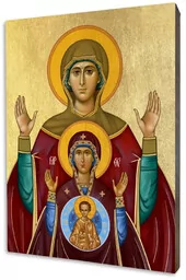 Ikona błogosławionego macierzyństwaIkona błogosławionego macierzyństwa wykonana na desce lipowej, podwójnie gruntowanej oraz uszlachetnionej płatkami pozłoty. Grafika ikony błogosławionego macierzyństwa została naniesiona przy użyciu specjalnej techniki druku bezpośrednio na deskę. Ikona z tyłu posiada certyfikat naszej firmy wraz z rokiem produkcji oraz zawieszkę i jest gotowa do zawieszenia; dostępna jest w pięciu rozmiarach; grafika dostosowywana jest do formatu deski przez co może nieznacznie różnić się od zdjęcia produktu: 10x15 cm15x20 cm20x25 cm30x40 cm40x50 cmNie stosujemy produkcji masowej. Ikony powstają w chwili złożenia zamówienia, a każdego Klienta traktujemy indywidualnie.