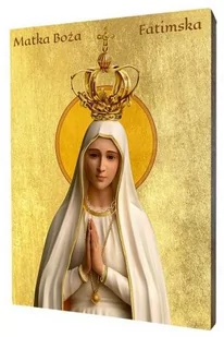 Ikona Matki Bożej Fatimskiej Ikona Matki Bożej Fatimskiej wykonana na desce lipowej, podwójnie gruntowanej oraz uszlachetnionej płatkami pozłoty. Wizerunek Matki Bożej Fatimskiej został naniesiony przy użyciu specjalnej techniki druku bezpośrednio na deskę. Ikona z tyłu posiada certyfikat naszej firmy wraz z rokiem produkcji oraz zawieszkę typu krokodyl i jest gotowa do zawieszenia; dostępna jest w pięciu rozmiarach; grafika dostosowywana jest do formatu deski przez co może nieznacznie różnić się od zdjęcia produktu: 10x15 cm 15x20 cm 20x25 cm 30x40 cm 40x50 cm Nie stosujemy produkcji masowej. Ikony powstają w chwili złożenia zamówienia, a każdego Klienta traktujemy indywidualnie.