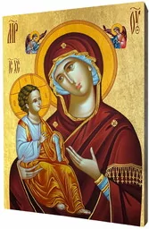 Ikona Matki Bożej JerozolimskiejIkona religijna z Matką Bożą Jerozolimską wykonana na desce lipowej, podwójnie gruntowanej oraz uszlachetnionej płatkami pozłoty. Wizerunek Matki Bożej Jerozolimską został naniesiony przy użyciu specjalnej techniki druku bezpośrednio na deskę. Jerozolimska Ikona Matki Bożej zgodnie z tradycją została napisana przez ewangelistę Łukasza. Historia podaje nawet miejsce oraz czas napisania ikony: Getsemania, 15 lat po Wniebowzięciu Pańskim.