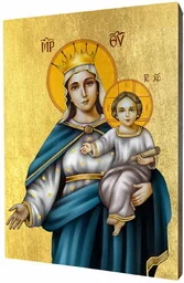 Ikona Matki Bożej KapłańskiejIkona Matki Bożej Kapłańskiej wykonana na desce lipowej, podwójnie gruntowanej oraz uszlachetnionej płatkami pozłoty. Wizerunek Matki Bożej został naniesiony przy użyciu specjalnej techniki druku bezpośrednio na deskę. Ikona z tyłu posiada certyfikat naszej firmy wraz z rokiem produkcji oraz zawieszkę typu krokodyl i jest gotowa do zawieszenia; dostępna jest w pięciu rozmiarach; grafika dostosowywana jest do formatu deski przez co może nieznacznie różnić się od zdjęcia produktu: 10x15 cm15x20 cm20x25 cm30x40 cm40x50 cmNie stosujemy produkcji masowej. Ikony powstają w chwili złożenia zamówienia, a każdego Klienta traktujemy indywidualnie.