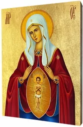 Ikona Matki Bożej Pomocy kobietom rodzącymIkona religijna z Matką Bożą Pomocy kobietom rodzącym wykonana na desce lipowej, podwójnie gruntowanej oraz uszlachetnionej płatkami pozłoty. Wizerunek Matki Bożej został naniesiony przy użyciu specjalnej techniki druku bezpośrednio na deskę. Ikona z tyłu posiada certyfikat naszej firmy wraz z rokiem produkcji oraz zawieszkę i jest gotowa do zawieszenia; dostępna jest w pięciu rozmiarach; grafika dostosowywana jest do formatu deski przez co może nieznacznie różnić się od zdjęcia produktu: 10x15 cm15x20 cm20x25 cm30x40 cm40x50 cmIkony religijne ART CHRISTIANA - wspaniały upominek religijnyNie stosujemy produkcji masowej. Ikony powstają w chwili złożenia zamówienia, a każdego Klienta traktujemy indywidualnie.