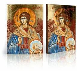 Szczególnie ulubioną sceną, w której jest przedstawiany w ciągu wieków, jest Zwiastowanie. Na Zachodzie jest patronem filatelistów, pracowników łączności, pocztowców, dyplomatów, teledetekcji, radia i telewizji. Ikona religijna dostępna w siedmiu rozmiarach 10x12cm, 10,5x14cm, 12x16cm, 17x23cm, 29x39cm, 50x70cm oraz 70x100cm. Wizerunek bardzo wyrazisty i trwały, naniesiony na ręcznie złoconą deskę drewnianą. Możliwość wygrawerowania dowolnej treści na odwrocie ikony.