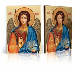 Ikona religijna Archanioł Michał Na prezentowanej ikonie religijnej znajduje się wizerunek Archanioła Michała. Jego hebrajskie imię znaczy, "Któż jak Bóg". Michał jest archaniołem, którego wierni przyzywają w walce przeciwko złu. Jest patronem policjantów, żołnierzy i małych dzieci, opiekuje się także pielgrzymami i obcymi ludźmi. Daje wsparcie wszystkim, którzy znajdują się w strasznym ucisku.
