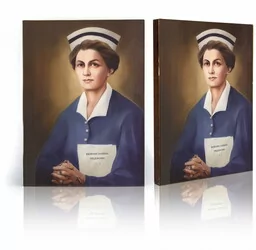 Utworzyła fundamenty nowoczesnej opieki nad pacjentami, usilnie starała się zapewniać ich że ich życie ma wielką wartość, pomagała także rodzinom chorym. Symbolika: Na ikonie Błogosławiona Hanna Chrzanowska przedstawiona jest w uniformie pielęgniarki. Ikona religijna dostępna w siedmiu rozmiarach 10x12cm, 10,5x14cm, 12x16cm, 17x23cm, 29x39cm, 50x70cm oraz 70x100cm. Wizerunek bardzo wyrazisty i trwały, naniesiony na ręcznie złoconą deskę drewnianą. Możliwość wygrawerowania dowolnej treści na odwrocie ikony.