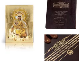 Każda ikona ma złoty certyfikat autentyczności. Wszystkie zamówione ikony pakujemy w estetyczne pudełko, dzięki czemu są gotowe do podarowania bliskiej Ci osobie.